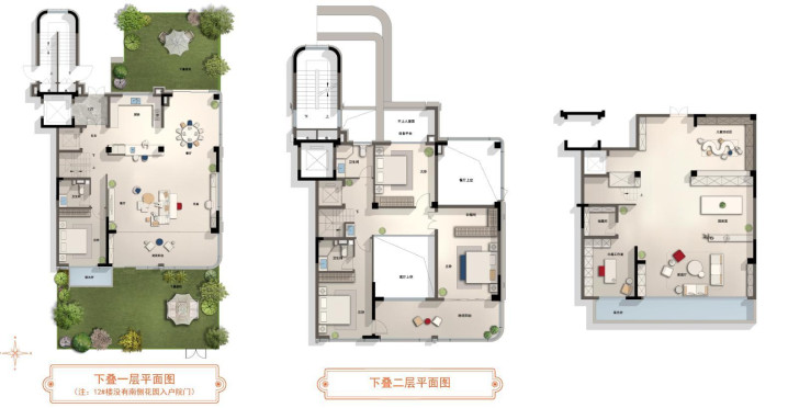 建面约278㎡的下叠,三开间朝南,单层开间足足有11.6米。更惊喜的是,除了南北双院,下叠还创新设计了下沉式庭院——