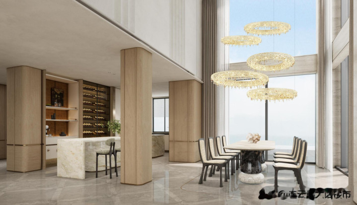 叠墅客厅挑高约6.6米,平层部分户型客厅挑高约6.4米,等于是把一体化设计的客餐厅又放大了一倍。