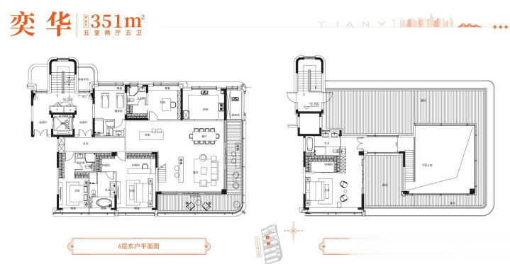 天奕的户型是建面约233㎡起步,几乎都是东西两户。